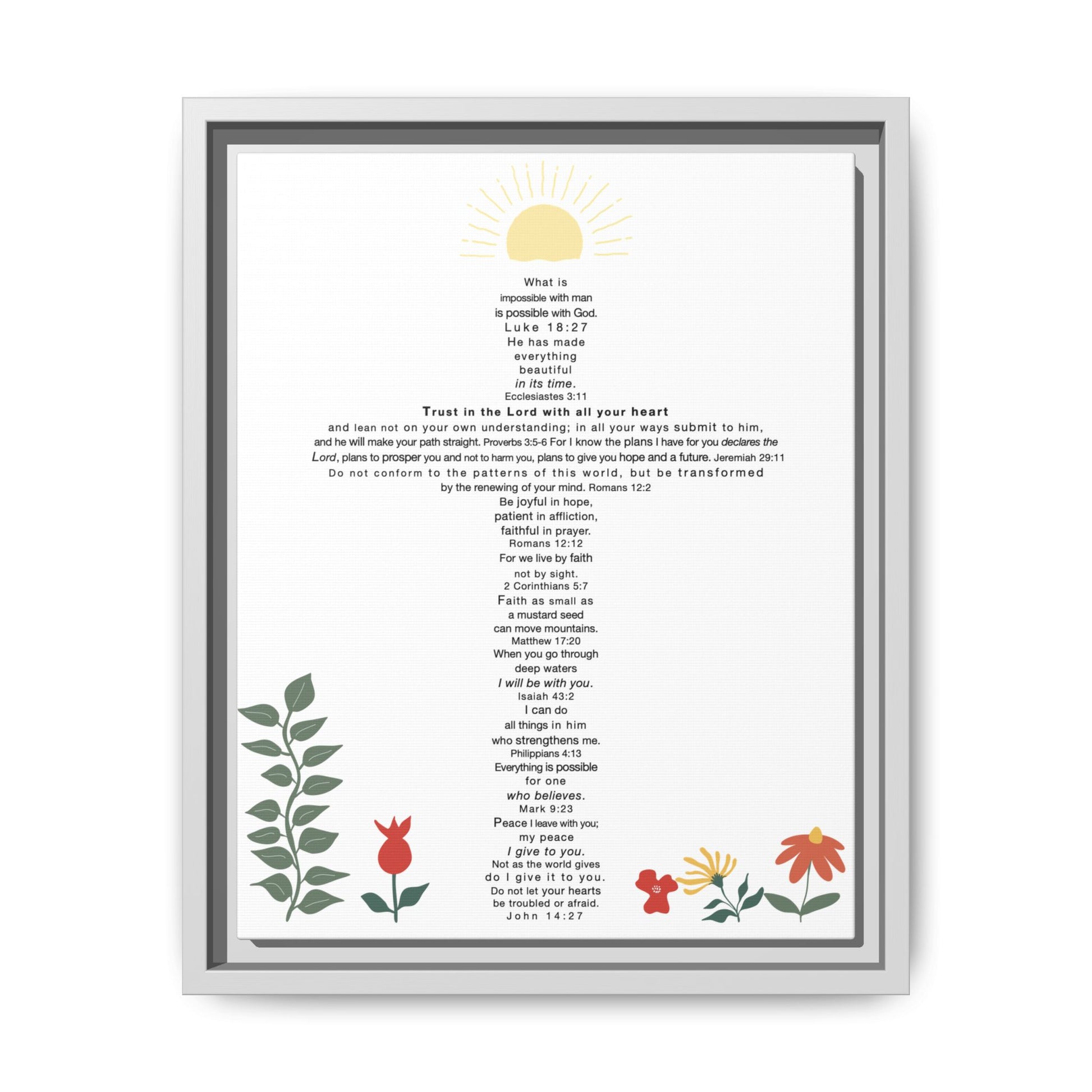 Inspirational Floral Scripture Framed Canvas Wall Art
