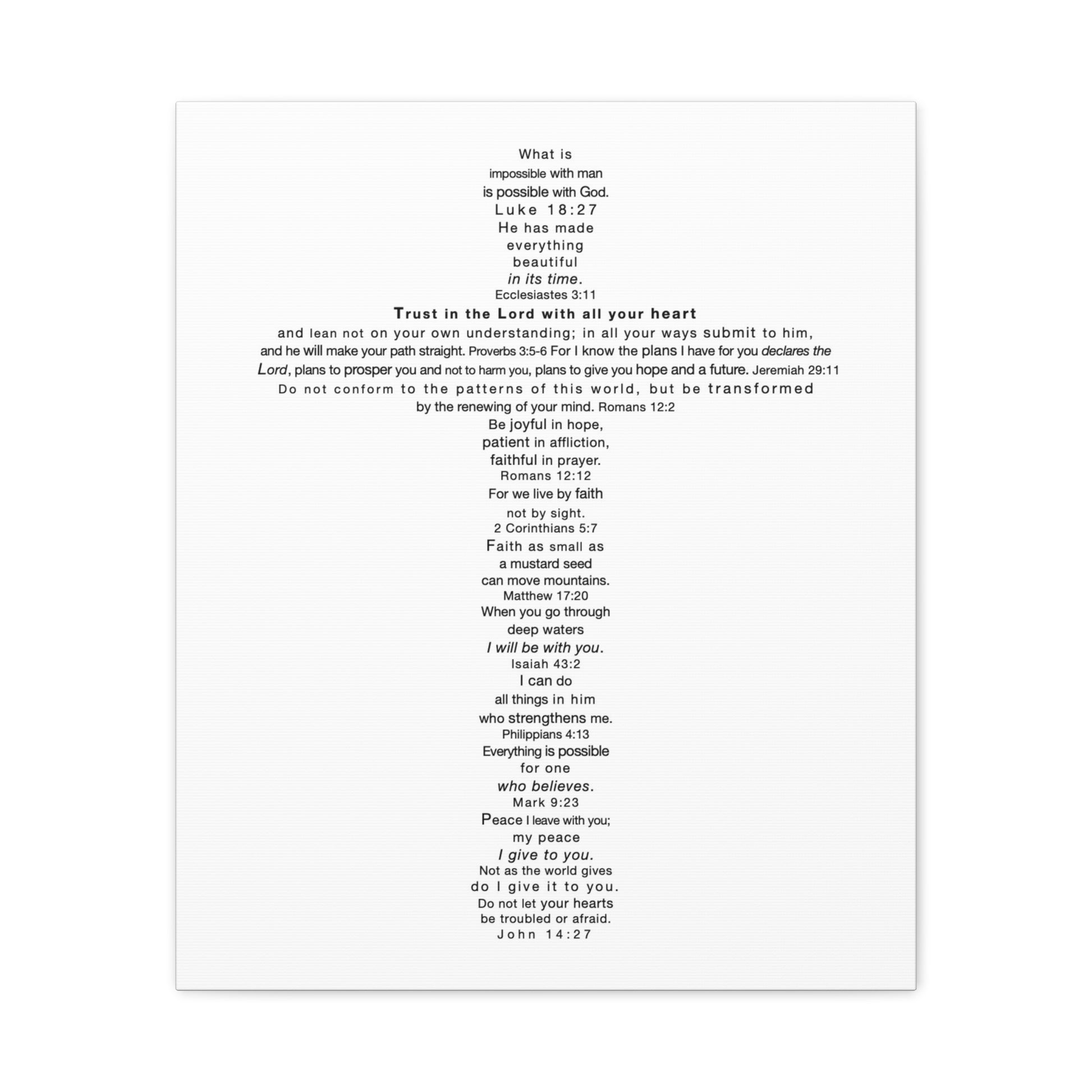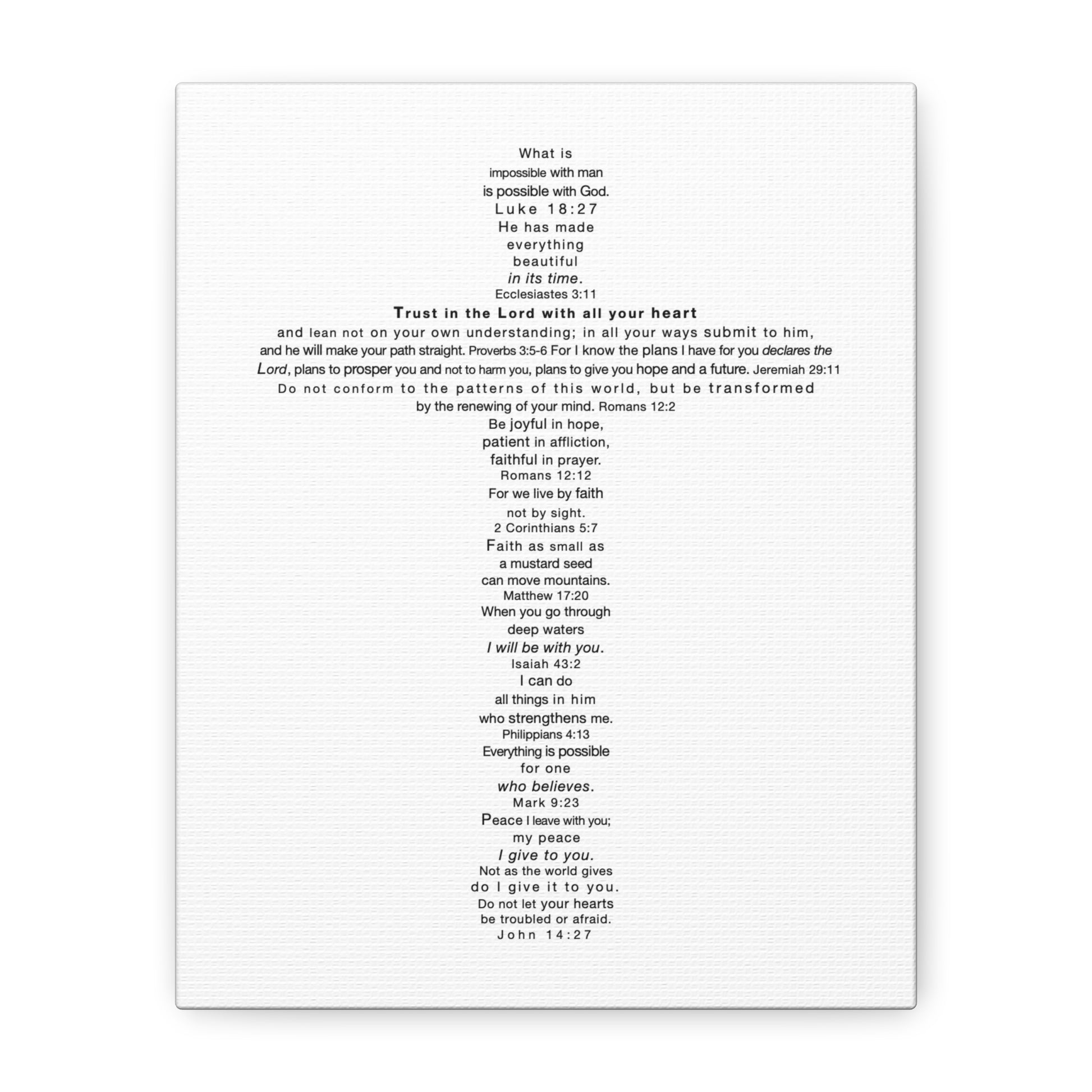 Enhance your living space with this beautiful Stretched Canvas, designed to inspire and uplift. The striking artwork features a meaningful quote that embodies faith and positivity, making it a perfect addition to any home. Ideal for those who appreciate spiritual decor, this piece serves as a daily reminder of trust and belief, adding serenity to your environment.